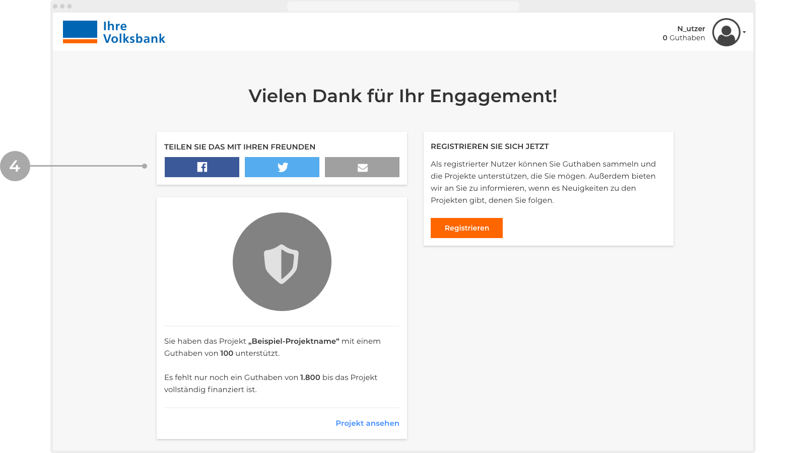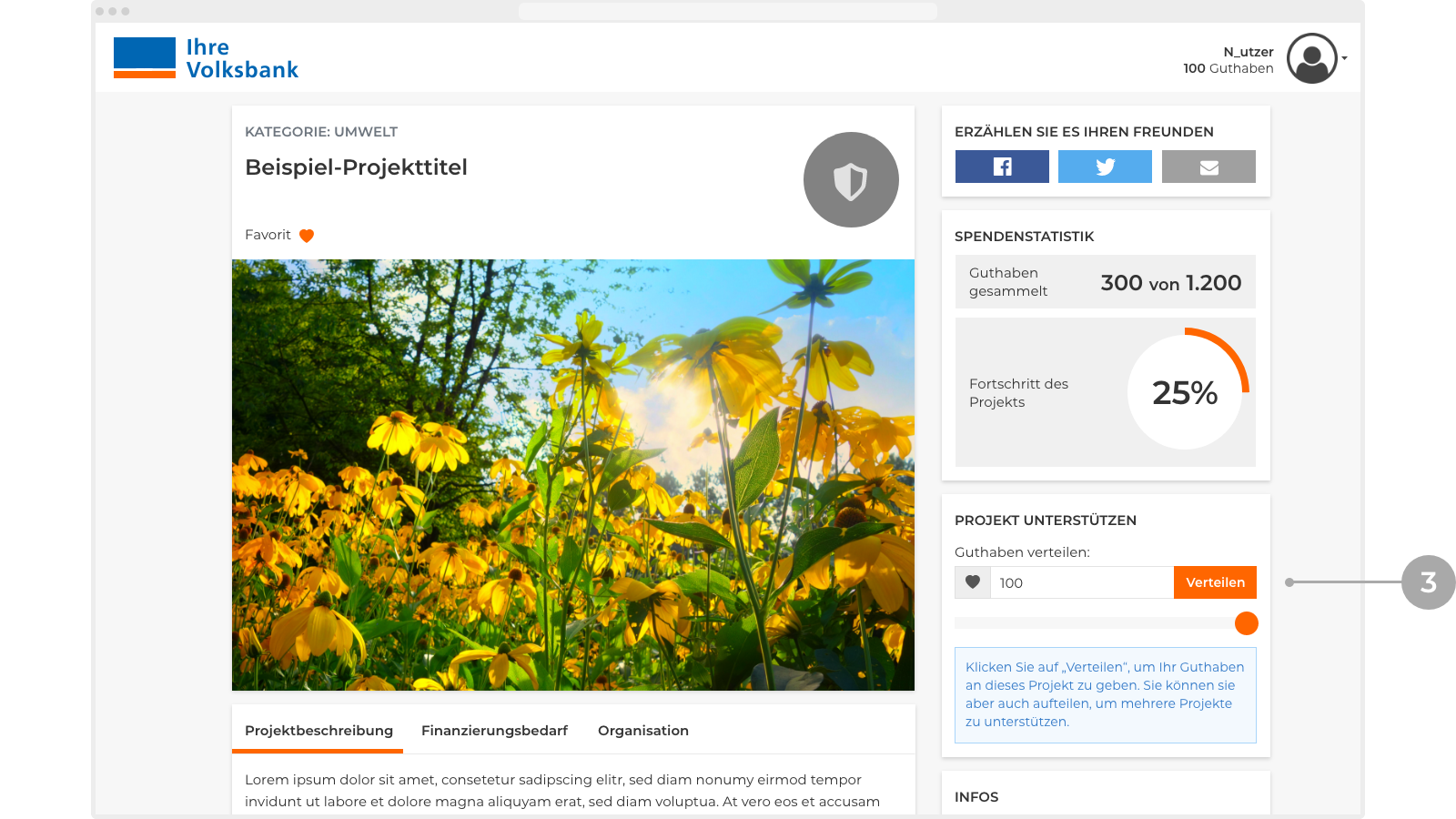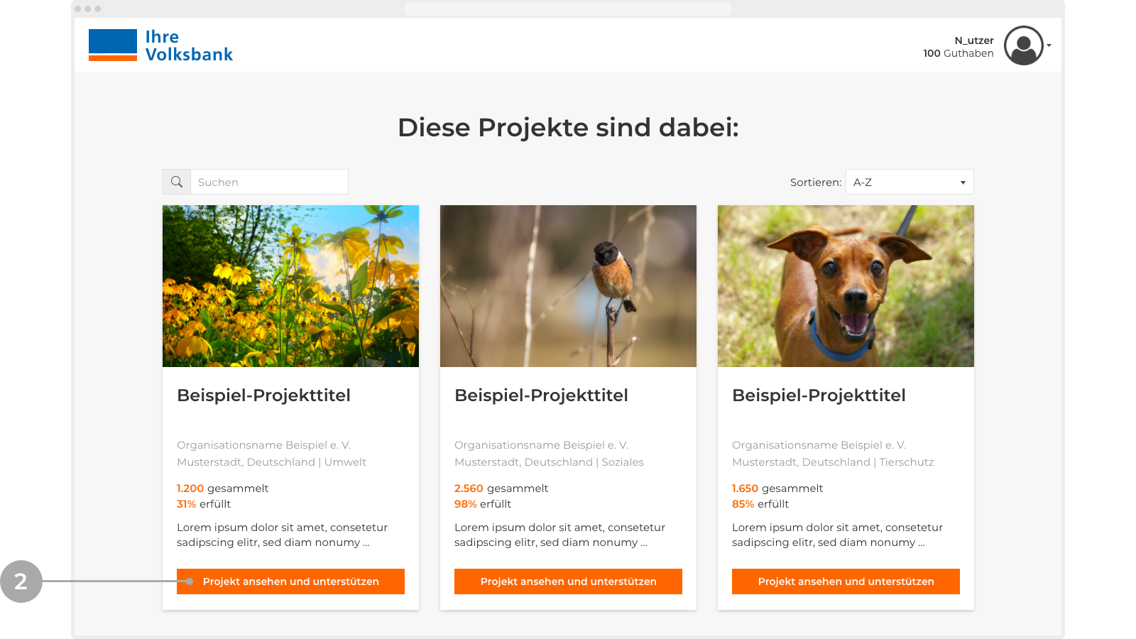 Suchen Sie sich ein Projekt von der Projektübersichtsseite aus, das Sie unterstützen möchten. Klicken Sie dazu auf den Button „Projekt ansehen und unterstützen“. Damit gelangen Sie auf die Detailseite des Projekts.